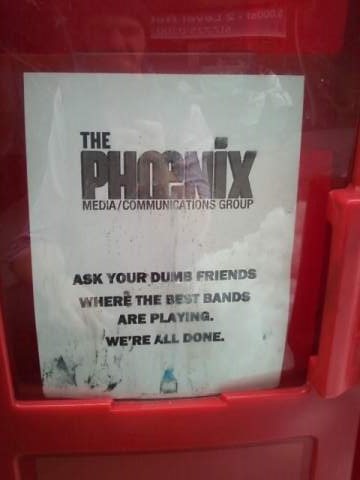 I’ve been greatly enjoying everyone’s salutes, eulogies, and memories of the dearly-departed Boston Phoenix. But Ryan H. Walsh of Hallelujah the Hills wins the top prize by placing these Public Service Announcements all over town. Maybe we should just give him a red box of his own.