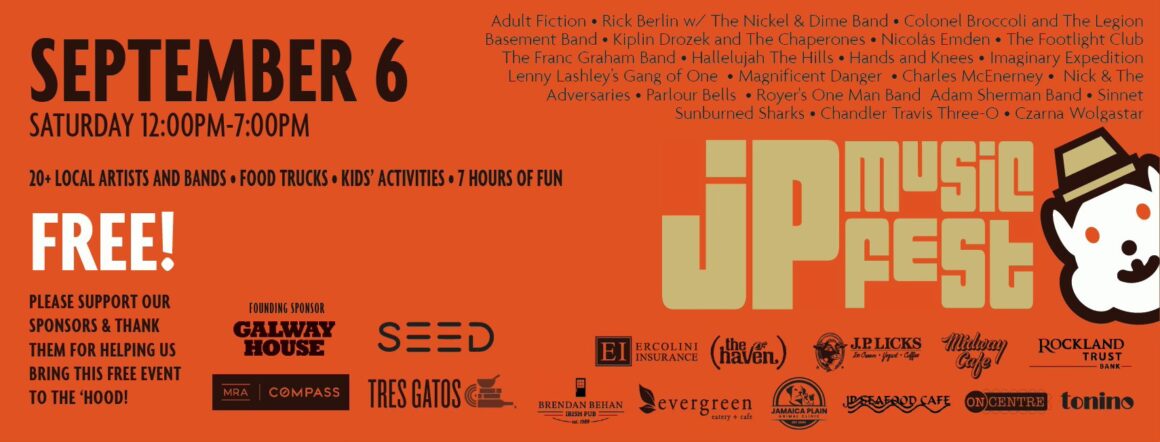 JP MUSIC FEST :: Saturday, September 5 at Pinebank Field, 345 Jamaicaway in Boston, MA :: Noon to 7 p.m., all ages, free admission :: Event homepage
